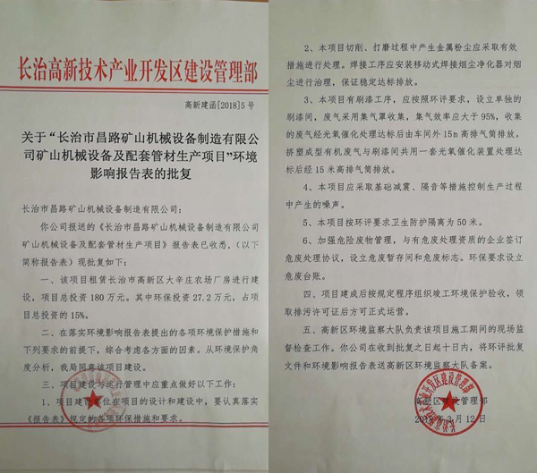 榮獲長治高新區環境影響報告表的批復